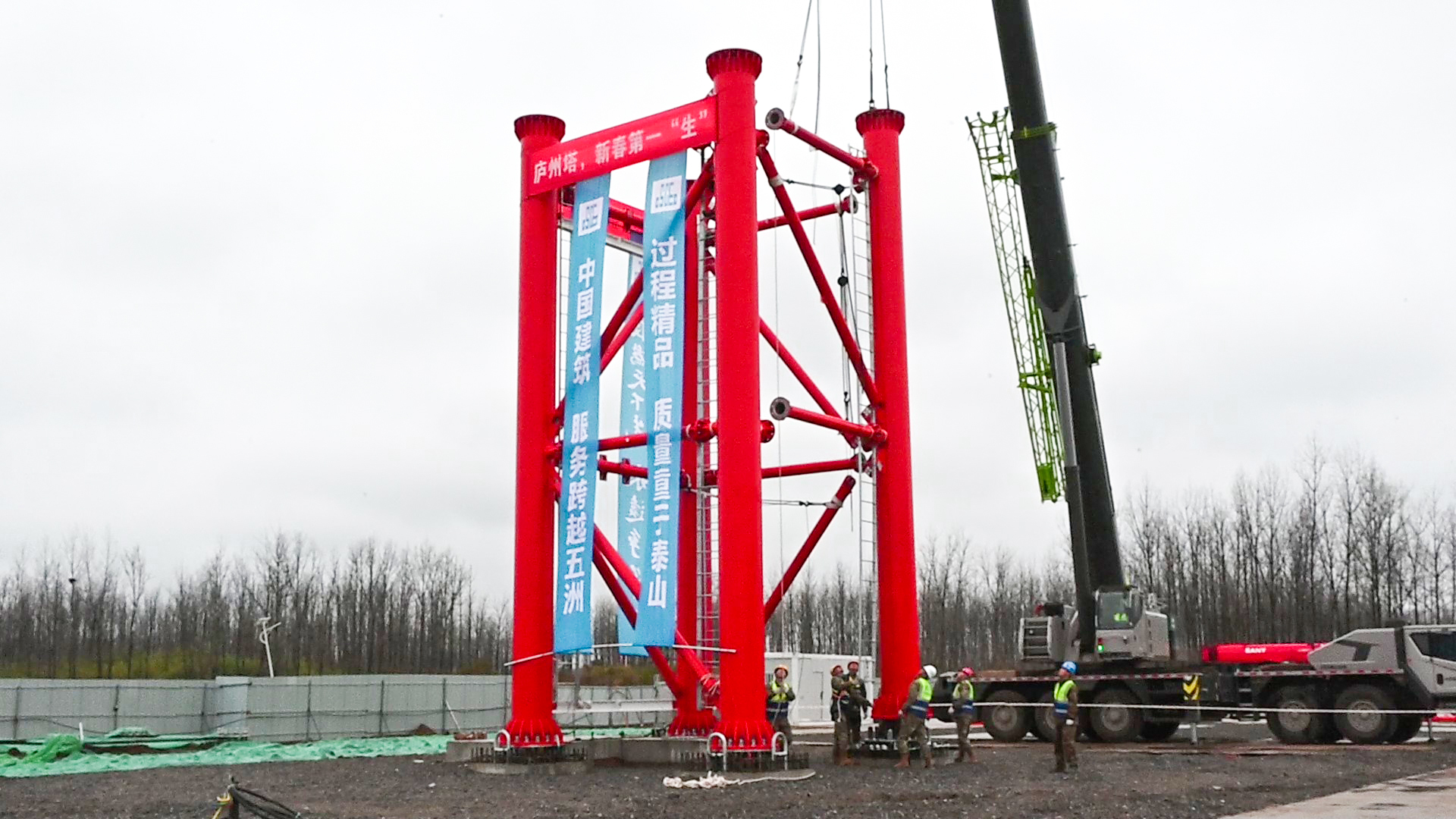 2月24日上午,新春开工第一天,在合肥综合性国家科学中心未来大科学城,400米大气环境气象梯度观测塔(庐州塔)首节主塔钢结构精准起吊、平稳就位,顺利完成首次吊装,标志着该科研设施正式迈入主塔结构安装新阶段。