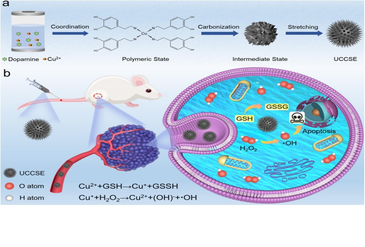 近日,中国科学院合肥物质院强磁场中心王辉研究员团队与新加坡南洋理工大学赵彦利教授团队合作,依托稳态强磁场实验装置电子顺磁共振谱仪,成功构建出一种新型海胆状铜单原子纳米酶,并揭示了海胆针刺长度与细胞内吞效率及相应肿瘤催...
