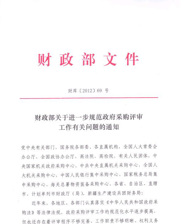[国家] 财政部关于进一步规范政府采购评审工作有关问题的通知