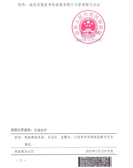 [国家] 财政部关于印发《政府采购竞争性磋商采购方式管理暂行办法》的通知