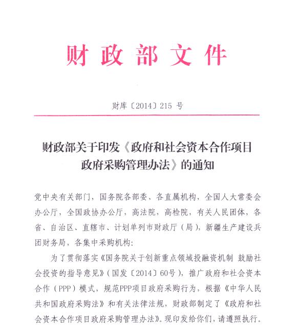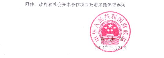 [国家] 财政部关于印发《政府和社会资本合作项目政府采购管理办法》的通知