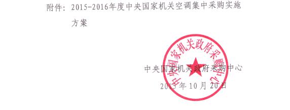 [国家] 关于印发《2015-2016年度中央国家机关空调集中采购实施方案》的通知