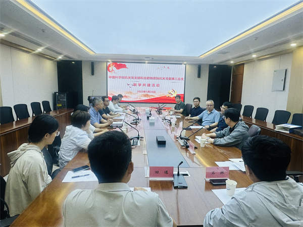 为加强协同联动,推动抢占科技制高点核心任务开展,2025年5月26日,合肥物质科学研究院(以下简称“合肥物质院”)机关党委第三党总支与来合肥参加中国科学院“科苑杯”第3届职工龙舟赛院机关代表队部分同志在合肥科学岛联合开展“党建引领科技攻关”主题联学共建活动。双方代表近20人参加活动,通过实地调研、座谈交流等形式,共话科技创新使命,共谋协同发展新篇。合肥物质院纪委书记章骏平参加座谈交流。