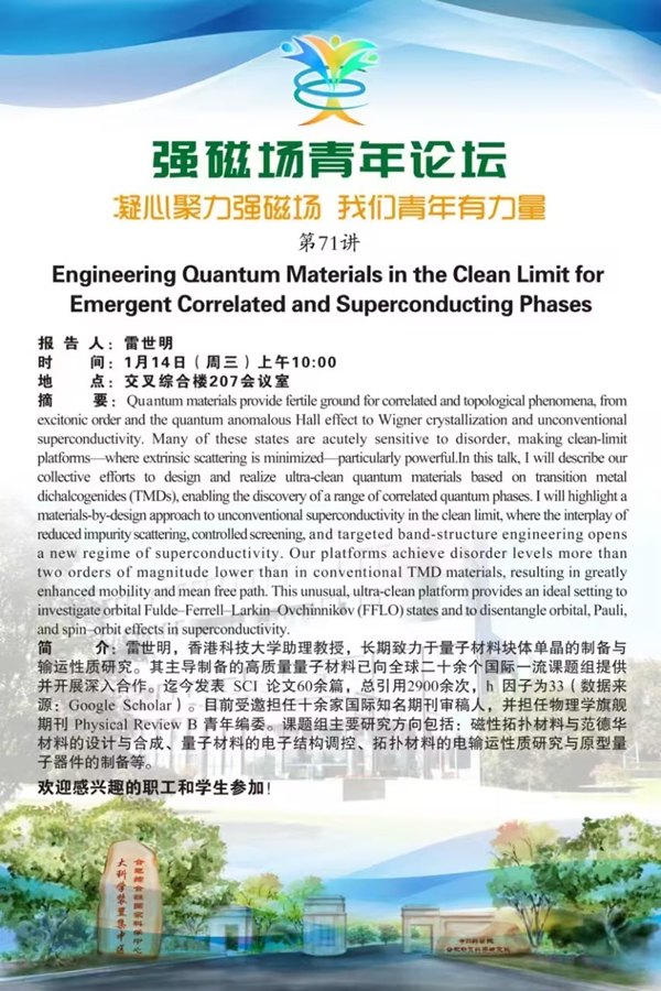 【01.14】学术报告:Engineering Quantum Materials in the Clean Limit for Emergent Correlated and Topological Phases