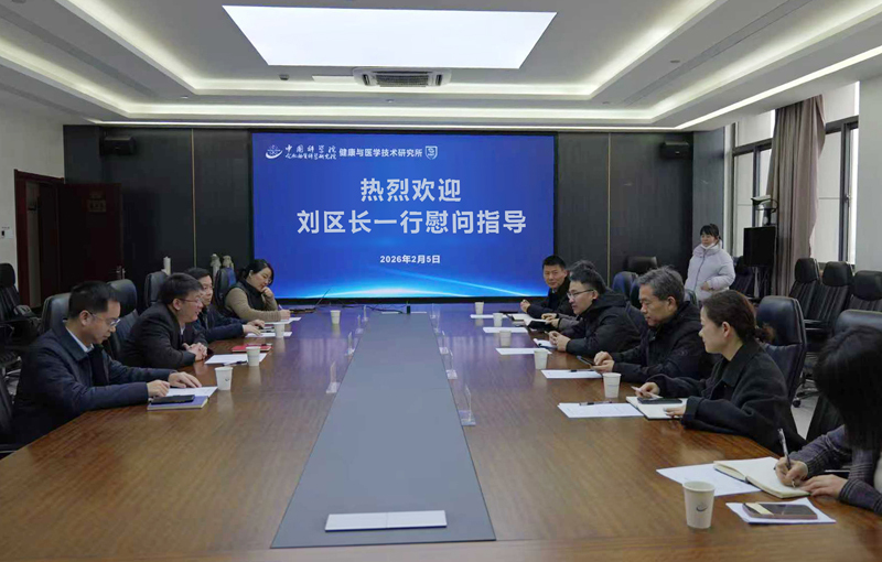 刘青松代表健康所对刘智一行来访表示热烈欢迎和衷心感谢。他回顾了健康所及个人团队在蜀山区的成长历程,介绍了健康所及合肥肿瘤医院在重大疾病精准医学研究、创新药物研发及关键技术攻关方面的最新进展与未来规划。他表示,健康所作为国家战略科技力量,将始终坚守“创新科技、服务国家、造福人民”的初心使命,力争产出更多原创性标志性成果,助力国家高水平科技自立自强和区域经济社会高质量发展。