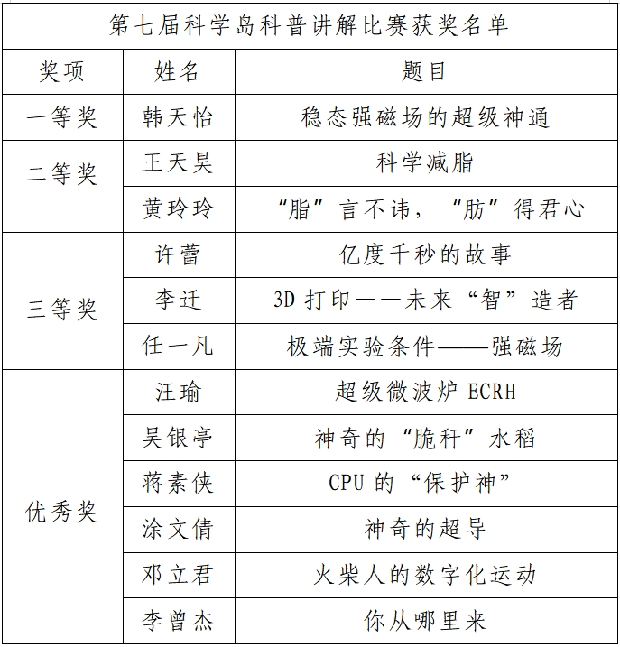 6月15日上午,合肥物质院举办了第七届科学岛科普讲解比赛。来自各科研单元及机关处室的17名选手展开激烈比拼,最终决出一等奖1名、二等奖2名、三等奖3名、优秀奖6名。