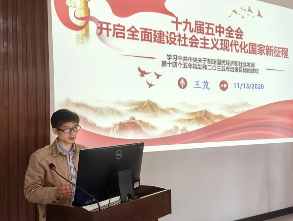 11月13日下午,中科院合肥研究院十室党支部召开党员大会集中学习党的十九届五中全会精神,会议由支部书记王茂主持。