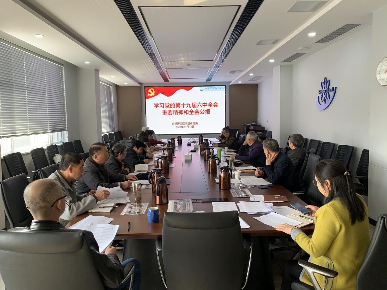 11月18日,合肥研究院离退休党委组织召开理论中心组学习会,专题学习党的十九届六中全会重要精神。离退休党委全体委员,各党支部书记、副书记参加学习。
