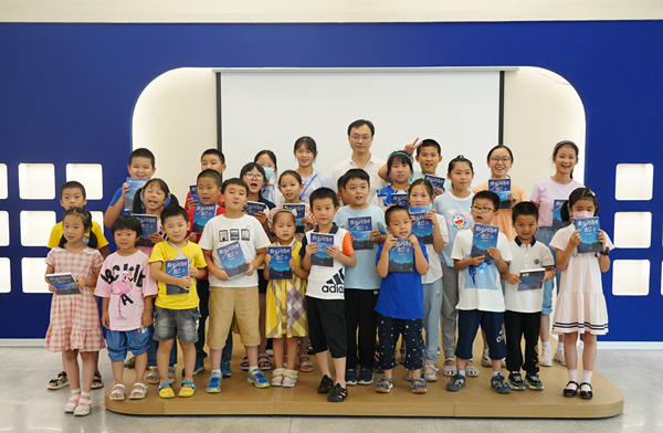 孙少明作了题为《仿生智能机器人》的科普报告,他从“仿生技术科学及意义”出发,以图片、视频的形式展示了仿人机器人、仿生机器鱼、“大狗”四足机器人等,激发了小朋友们的学习兴趣,孩子们提出了天马行空的问题,孙少明细心解答,带领孩子们走进机器人的科学世界;此外,孙少明为孩子们发放了儿童读物《群星闪耀的夜空》。