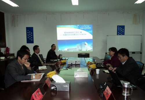刘佩华从研究领域、平台建设、产业化项目到人才规划等方面详细介绍了苏州纳米所成立、发展的整个过程和研究所筹建经验,与会人员仔细听取了介绍并不时提问交流,详细了解了纳米所建设发展最新进展以及服务地方经济发展的相关做法和建设过程中的一些注意事项。