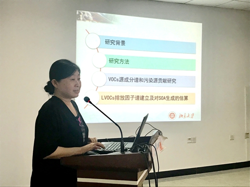陆思华高级工程师,主要从事大气中有机污染物的监测和污染来源研究、有机污染物相关分析测试技术及质量控制质量保证等方面的工作。5月29日,陆思华应邀做了题为《反应性有机物的污染来源研究》的学术报告。报告会上,她详细介绍了近年来她所在团队在反应性有机污染物监测和来源解析方面的研究进展。她指出,近些年来研究显示,在大气复合污染生成过程中,不仅挥发性有机物(VOCs),且低挥发性有机物LVOCs(含半挥发性有机物SVOCs以及中等挥发性有机物IVOCs)在二次有机气溶胶SOA生成反应中也有贡献显著,两者均是大气复合污染的主要源头。因此她所在的科研团队,通过分析排放源成分谱试图对反应性有机物进行源解析,目前课题组面对重污染情况下大气SVOCs来源识别等难题,初步分析了汽油车、柴油车尾气等SVOCs排放因子。但由于总的研究基础薄弱及技术手段限制,VOCs、LVOCs源成分谱测量、研究还存在着不足。