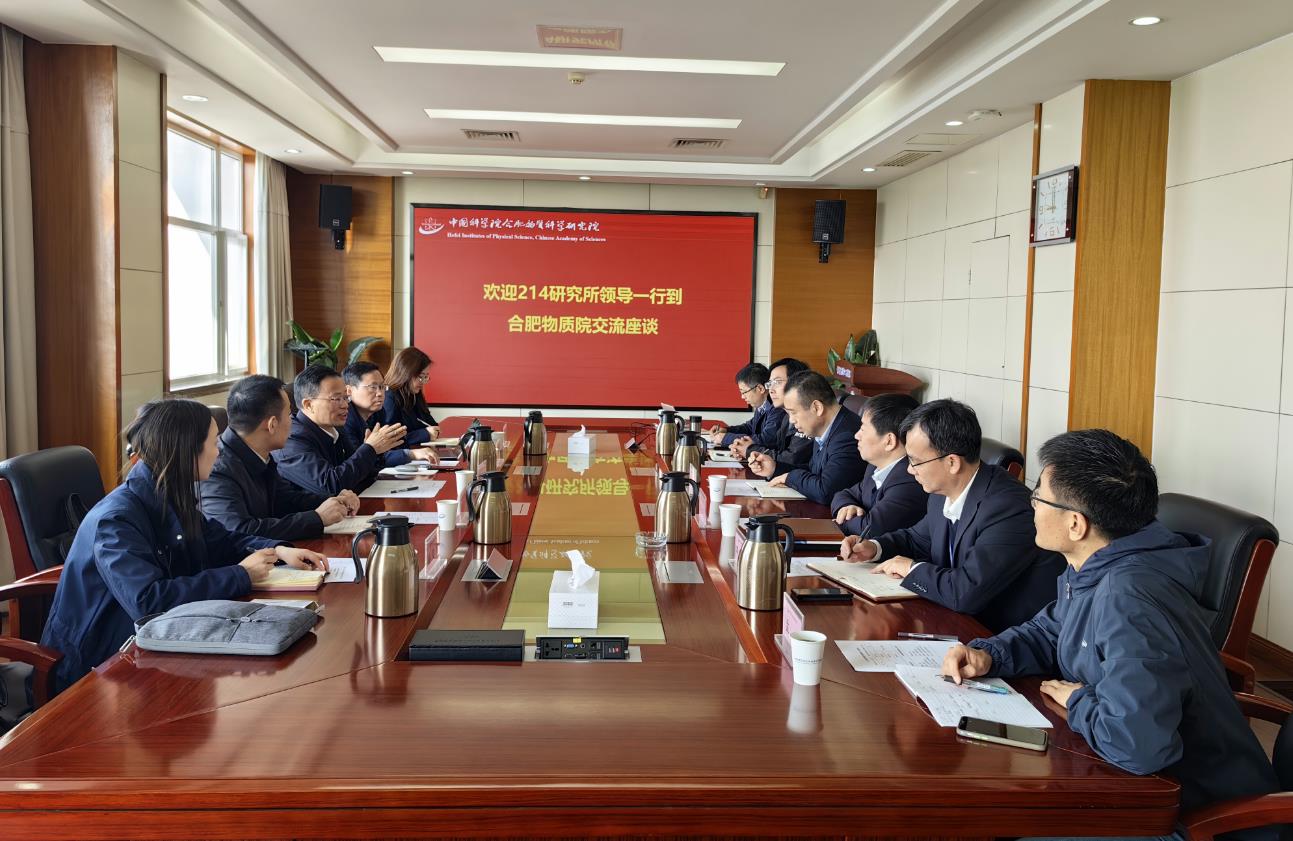 近日,中国兵器工业第214研究所所长陈丙根一行到合肥物质院交流座谈,院长刘建国、副院长宋云涛接待了来宾一行。