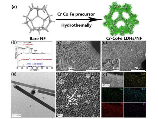 近期,固体所与南开大学、河南师范大学等单位合作,在离子掺杂水滑石电催化剂研究方面取得新进展,构筑了具有优异氧析出性能的Cr掺杂的CoFe水滑石电催化剂,相关研究成果发表在国际期刊Small 上。