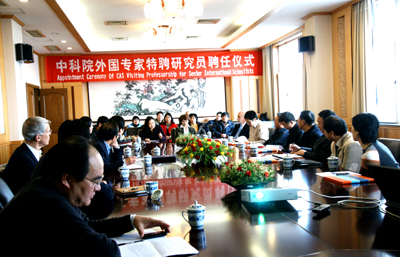 2009年12月9日,合肥研究院为获得2009年度中国科学院外国专家特聘研究员荣誉的三位外国专家举行了隆重热烈的聘任仪式。中科院国际合作局吕永龙局长为三位专家颁发了由中科院院长路甬祥亲自签名的中国科学院特聘研究员证书。