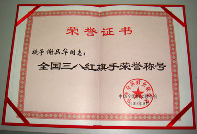 谢品华获“全国三八红旗手”光荣称号