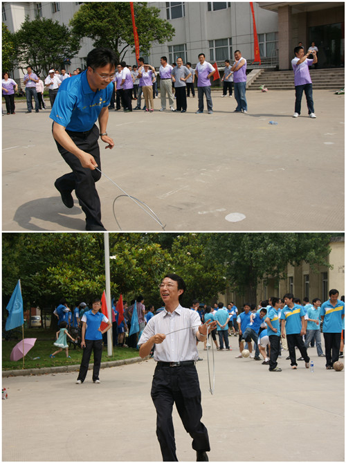 具体到其它比赛项目,一定要提“滚铁环”,儿时的经典游戏重新出现在科学岛之春的运动会赛场上,引起一阵“怀旧风”。研究院领导匡光力、吴四发也忍不住一试身手,并最终获得38秒的优异成绩。点球大战、障碍跑比赛、团体跳绳,各项赛事的设置充分考虑到团体合作和个人素质:为完成距离50米的障碍跑比赛,参赛队员需要跃跨栏、钻障碍、绕凳子、夹玻璃球,这不仅要求队员有爆发力,还要身体灵活,细心、耐心,强磁场中心1队以2分43秒勇夺第一名;滚铁环比赛各参赛队实力都很强,前三名速度都在30秒之内,先进所普通1队和核安全所普通5队以29秒并列第一;团体跳绳赛,等离子体所5队以3分钟跳326次获得第一,核安全2队以3次之差排名第二。