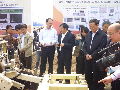 4月29日上午,农业部副部长余欣荣等一行在安徽省副省长梁卫国陪同下,视察了智能所承担的安徽省龙亢农场大田物联网试验点项目并与智能所常务副所长王儒敬研究员进行交流,指导下一步的工作。