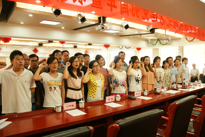 会上,研究院新加入党组织的28名预备党员在党群办主任程艳的领誓下面向党旗庄严宣誓。