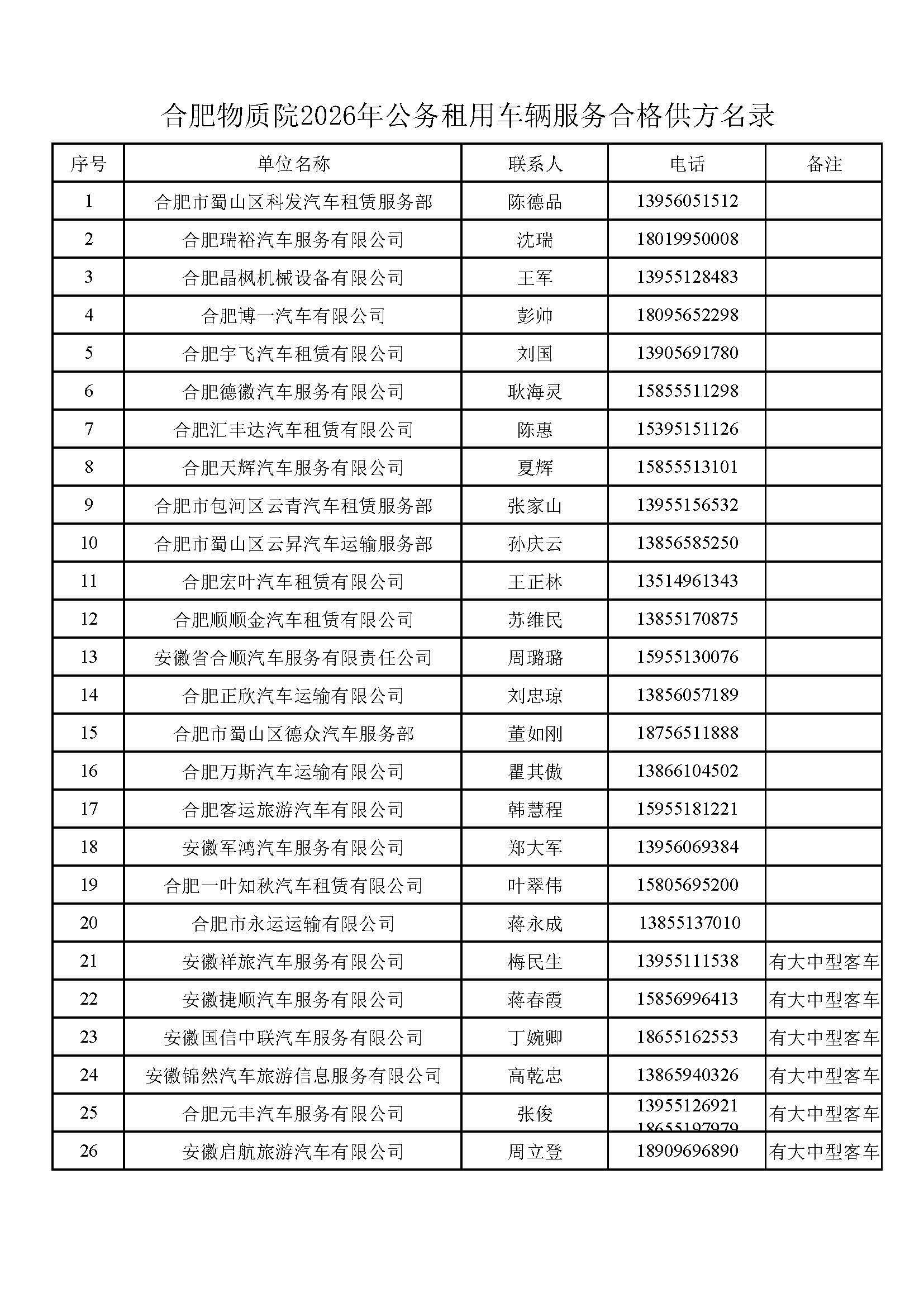 关于发布2026年公务车辆租用服务合格供方名录的通知