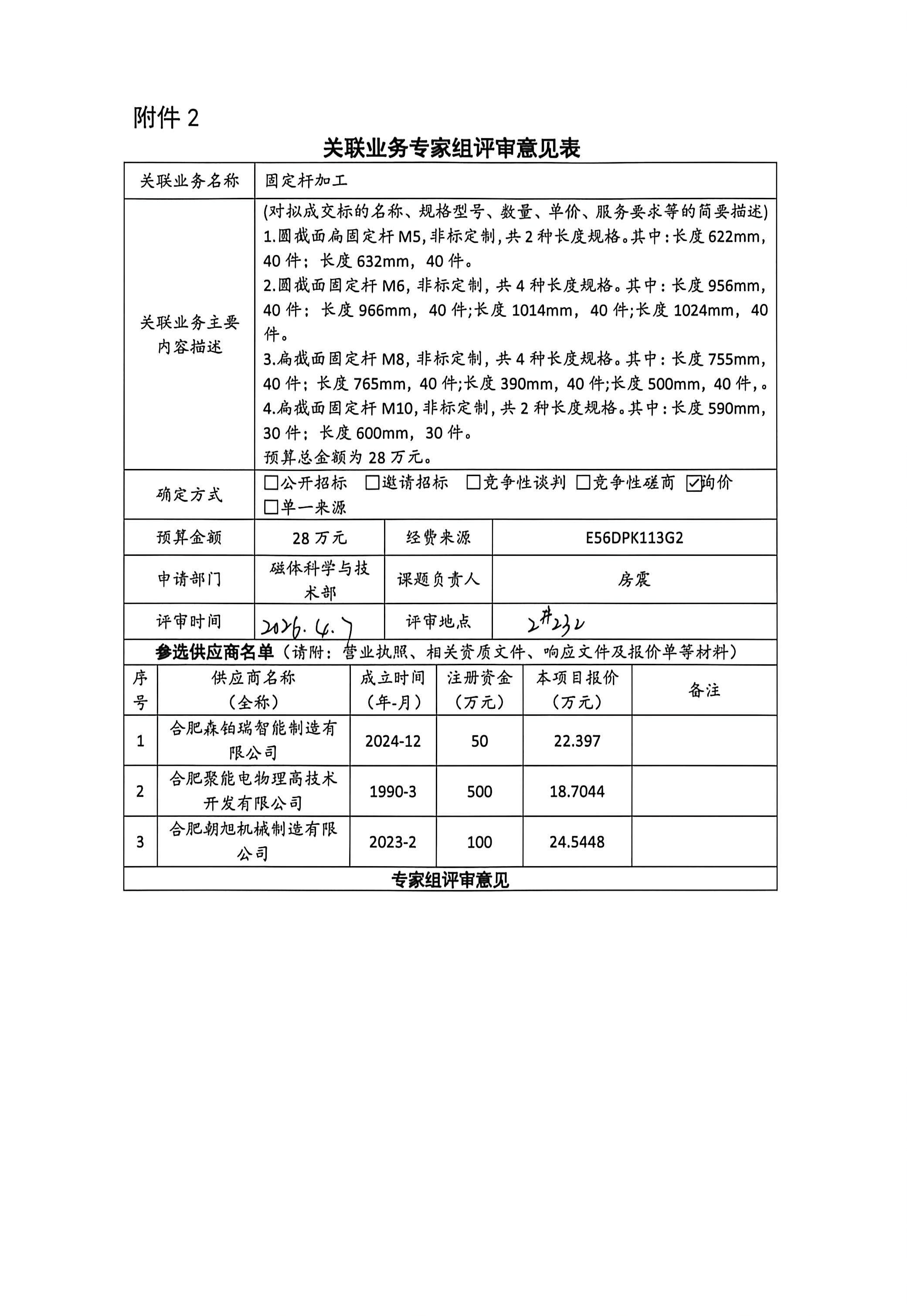 根据《中国科学院关于加强科研项目关联业务管理的暂行规定》(科发条财字〔2015〕125号)、《中国科学院合肥物质科学研究院关于加强科研项目关联业务管理的实施细则》(科合院发资字〔2021〕8号)、《合肥研究院加强关联业务管理暂行办法》(科合院发资字〔2022〕 1号)、《合肥物质院加强关联业务管理补充规定》(科合院发资字〔2025〕1号)要求,现就我院委托合肥聚能电物理高技术开发有限公司进行固定杆加工的关联业务做公示。