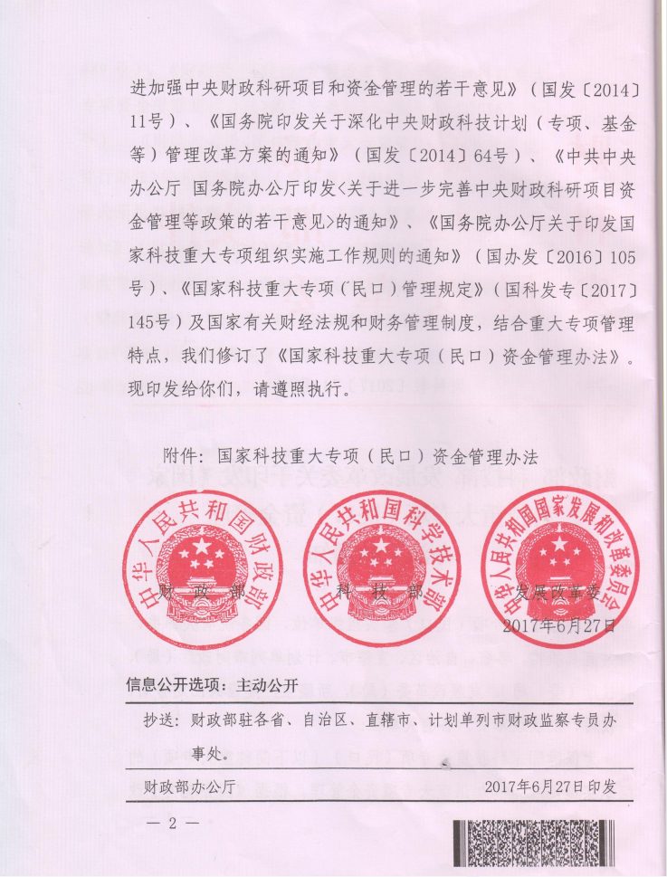 财政部_科技部_发展改革委关于印发《国家科技重大专项(民口)资金管理办法》的通知(财科教【2017】74号)