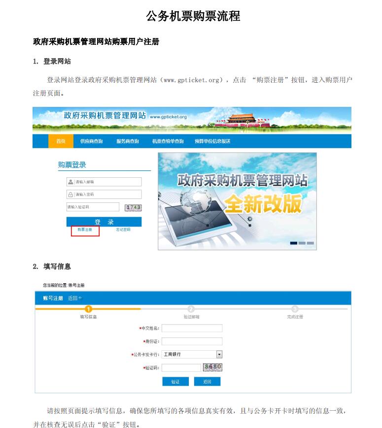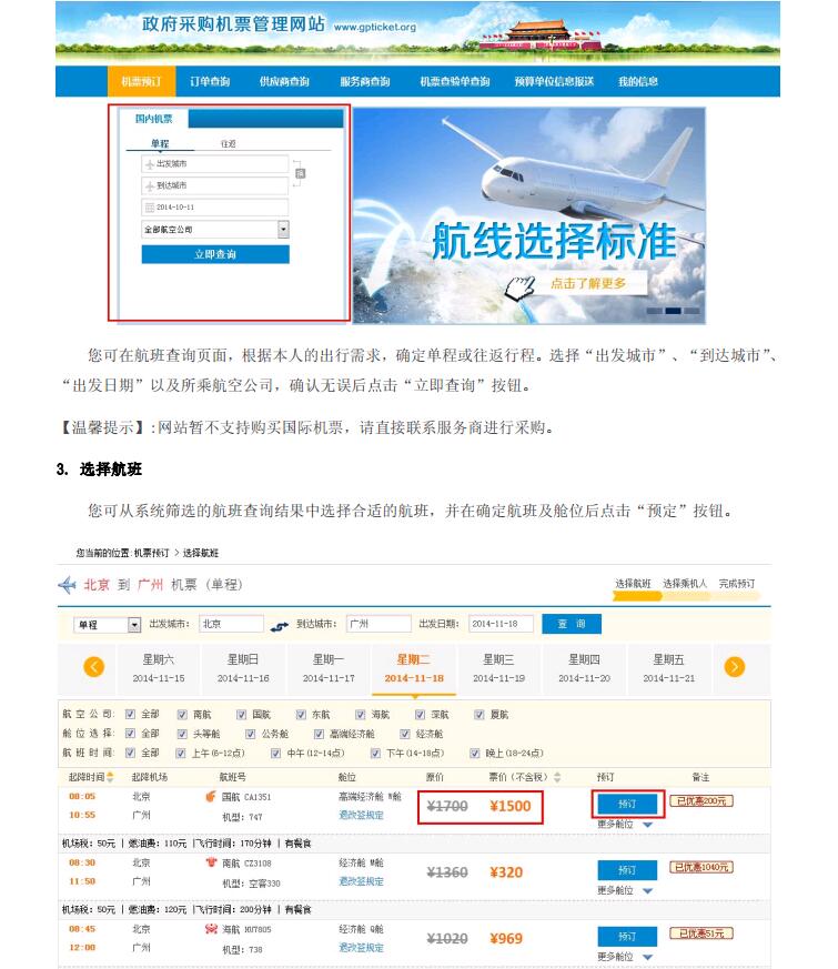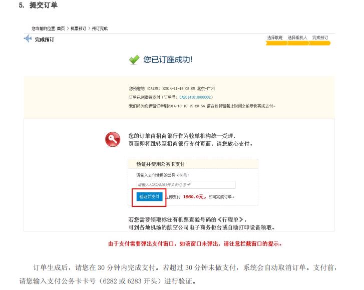 公务机票购票流程