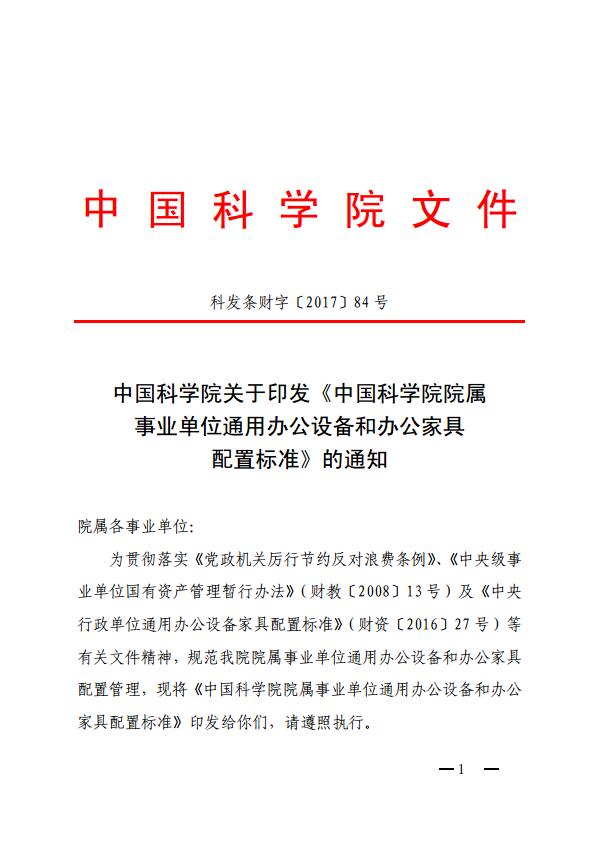 [中科院]《通用办公设备和办公家具配置标准》的通知