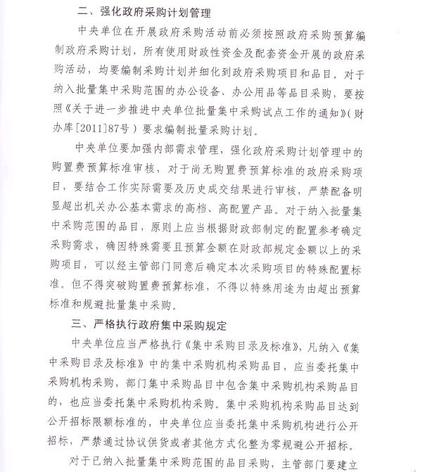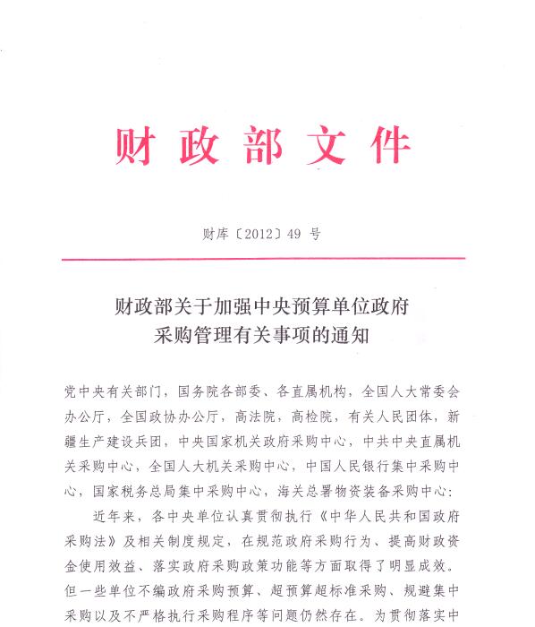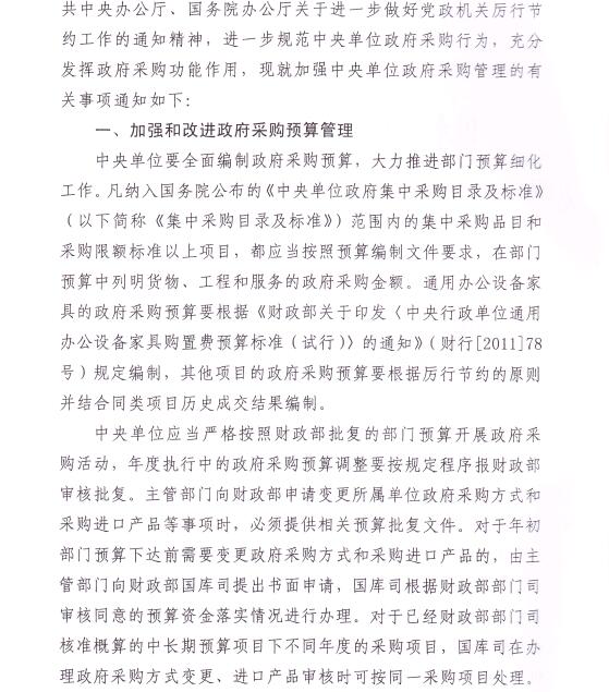 财政部关于加强中央预算单位政府采购管理有关事项的通知