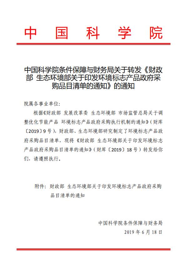 中国科学院条件保障与财务局关于转发《财政部生态环境部关于印发环境标志产品政府采购品目清单的通知》的通知