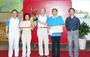 19日上午团体赛地角逐更是紧张和激烈。各队纷纷带来了自己的啦啦队,只要选手一出场,大家就屏住呼吸,眼睛直盯着选手的动作;球一出手目光紧随其后,伴随着“大满、大满”、“好”的声音球瓶纷纷倒下。此时的保龄球馆内,保龄球全部倒下撞击地板的声音不绝于耳,各队分数节节攀升,运动员、“亲友团” 、记分员融为一体;加油声、呐喊声、欢呼声响彻一片,参赛队伍的队友之间相互鼓励加油,相邻道次的选手之间也不断相互喝彩。赛场上活跃着一批资深研究员,他们个个英姿勃发,技艺超群;女队员也是英姿飒爽,毫不示弱,全力为团队拿分。最后,由戈瑜、伍先达、石国举组成的智能所一队以三局1767分的高分遥遥领先,获得团体冠军,由杜良、文公皊、丁爱民组成的安光所二队和由王世鹏、张登运、李家明组成的研究院机关一队分别以1603分和1559分获二、三名。