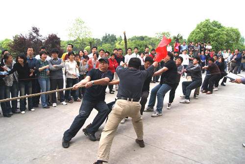 拔河比赛历来是运动会的重头戏,每队由12人组成,共有18支队伍展开了激烈的角逐,这是实力的对阵也是团队精神的完美体现。只见场上队员个个憋红了脸,使劲的拽着绳子,场下后勤队、啦啦队也是全身心投入,人人喊得声嘶力竭、场上加油声、欢呼声此起彼伏,集体主义精神在这里得到最好的体现和升华……。最终等离子体所一队与后勤一队进入决赛,使比赛呈现白热化状态,结果等离子所一队实力略胜一筹,蝉联冠军。
