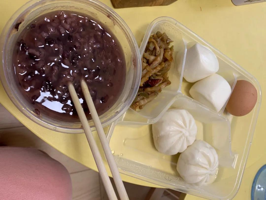 起床洗漱后吃了队长从公寓一楼领回来的早饭,早饭是两个小馒头、两个包子、一碗稀饭、一个鸡蛋,对于从来不吃面食南方的我来说,这个早饭很尴尬,但是我毫不含糊一口气吃光了,对于我来说,现在吃饭同上班执行医嘱一样不能含糊。我已经完全不考虑我的味觉感受,无论送来什么,我都要一口气吃完,交给胃来处理。