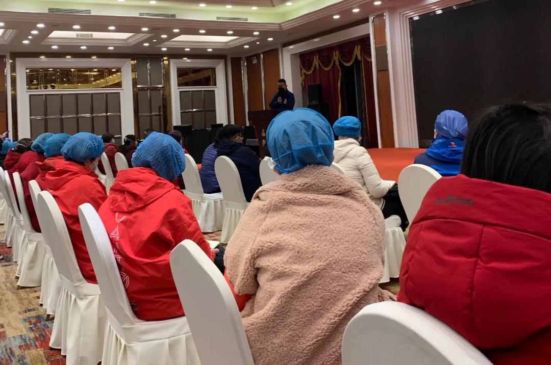 晚上六点,我们出发经历近一个小时的车程来到了另一个酒店集中培训,一路上看见岗亭、公交车司机、酒店工作人员全部身着防护服,感觉就像电影生化危机的画面,进酒店前工作人员对每个贴上安徽医疗队的队员进行全面喷洒消毒,帽子、衣服乃至鞋底。酒店培训了近三个小时,让我们了解了目前整个武汉疫情的形势,了解了所有对武汉的大力支持,掌握了如何观察新冠病人病情变化,如何穿脱防护服,最好的保护自己,如何应对工作压力等等,病房的一幕幕呈现在眼前,任重道远!一切都准备好了就等直奔战场……