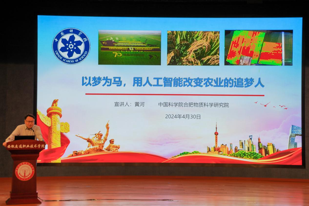 4月30日上午,安徽省直机关“青慧领航”榜样进校园启动仪式暨首场报告会举行。中国科学院合肥物质院青年科研人员代表黄河研究员见证活动启动仪式,并作主题演讲报告。