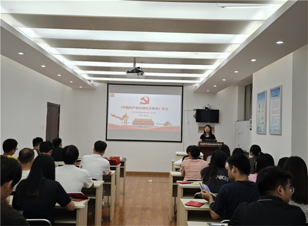 为进一步加强党的纪律建设,提高研究生党员遵规守纪意识,近日,研究生固体所第一党支部开展党纪学习教育主题党日活动,专题学习新修订的《中国共产党纪律处分条例》,会议由支部书记熊婷娇主持。