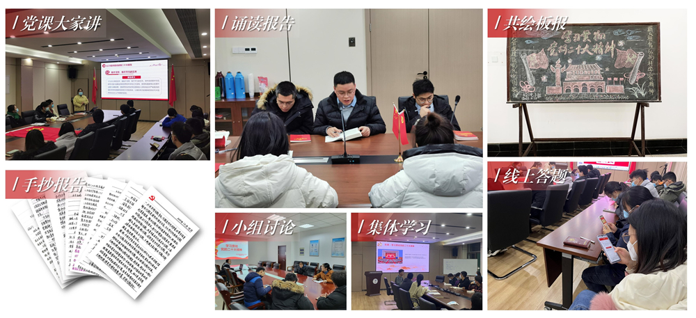 丰富形式,坚持联系实际学。党支部针对支部党员的实际特点,创新开展了共绘板报、“声临其境”诵读报告、手抄报告、党课大家讲、小组话题讨论和参观教育基地等具有吸引力和互动性的活动,并采用“学习强国”线上答题等方式检验学习成效;支部党员在分享和交流中,联系社会热点和个人实际,努力做到知行合一。