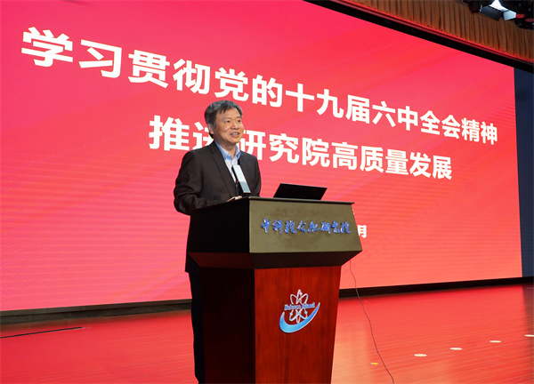 黄晨光以《学习贯彻党的十九届六中全会精神 推进研究院高质量发展》为题从深刻认识党的十九届六中全会召开的重大意义、《决议》的主要内容和精神要义、新时代取得的历史性成就和发生的历史性变革、从百年奋斗历程中汲取科技自立自强的力量四方面全面宣贯了党的十九届六中全会精神。他强调,要用好党百年奋斗的宝贵经验,紧密结合研究院实际和“十四五”规划,聚焦主责主业,把学习全会精神的思想收获转化为推动创新发展的强大动力,当好“国家队”“国家人”,心系“国家事”,肩扛“国家责”,围绕强基础、抓攻关、聚人才、促改革产生优异成果,迎接党的二十大胜利召开。