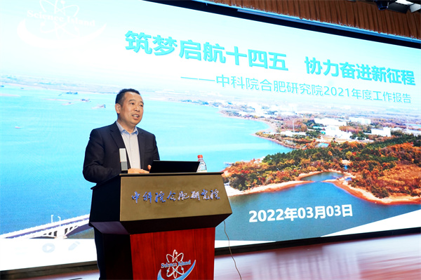 刘建国以《筑梦启航十四五 协力奋进新征程》为题作合肥研究院2021年度工作报告。2021年,研究院获国家技术发明二等奖 1 项、国家科技合作奖 1 项、中国政府友谊奖 1 项、中国专利银奖1项。在加强党的领导方面,深入开展党史学习教育,建成主题教育基地,高层次人才引进、培养量质齐升。科技创新方面,EAST装置两次创造新的世界纪录,CRAFT园区及设施研制稳步推进,卫星载荷研制取得新突破,自主研制关键重要件顺利保障重大任务,取得一批重要基础研究和应用研究进展。在中科院和安徽省全面合作协议框架下,着力推进国重重组、科学中心建设等省院合作重点事项,深度参与合肥综合性国家科学中心建设,加快推进科学岛国际科创走廊建设。服务保障方面,构建科学岛疫情防控工作体系,科学岛幼儿园正式开园,中科大附中科学岛子弟学校如期开学,有效发挥教育引才、稳才作用。针对2022年工作,报告提出,研究院要按照中科院党组部署积极参与国重重组工作,推进建制化科研范式改革,加强谋划系统级重大项目,推动科教融合综合示范区建设,以优异成绩迎接党的二十大胜利召开。