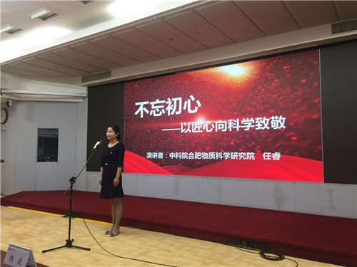 合肥研究院团委推报的选手任睿以《不忘初心,以匠心向科学致敬》为题, 讲述了对习近平总书记在十九大报告中提出“弘扬劳模精神和工匠精神,营造劳动光荣的社会风尚和精益求精的敬业风气”的学习体会。任睿在演讲中说,“不断创新、坚持不懈、精益求精”的工匠精神内化为一代代科研人追求科技创新的精神内核。