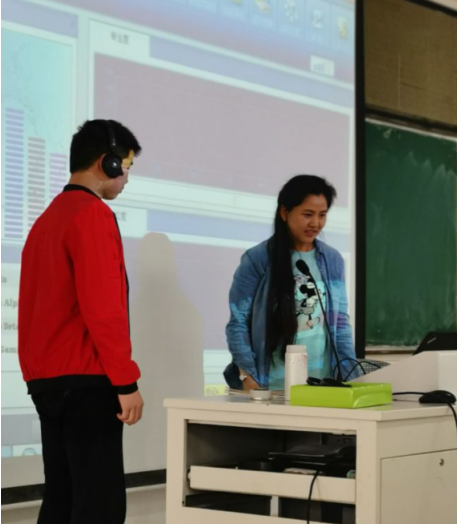 王慧博士通过开场小实验——《意念控制荷花盛开》点燃师生们的热情。通过大量的图片、视频与真实的事例,深入浅出地讲解机器人与人工智能的区别、意念在机器人世界中的神奇力量以及近年来研究小组在脑-机接口领域取得的最新研究成果。最后,为使师生们能更直观地感受意念控制的神奇之处,借助脑电波测量仪——“意念耳机”,开展有趣的互动环节——在虚拟界面中,对耳机佩戴者进行放松度及注意力专注度训练,从而激发学生们浓厚的兴趣,并积极参与其中。