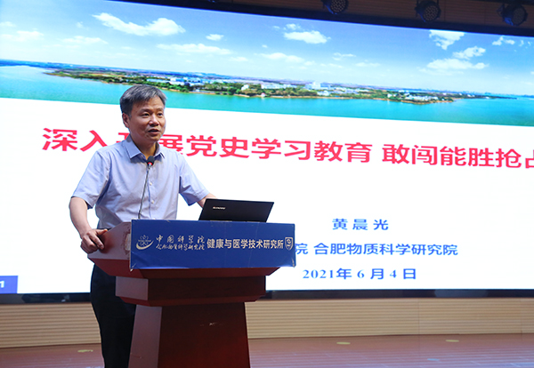 6月5日,中科院合肥研究院健康所党委开展党史学习教育专题培训,合肥研究院党委书记黄晨光受邀为健康所全体党员上党课。健康所党委成员、所领导班子成员及所属11个支部的约100名党员参加了学习。