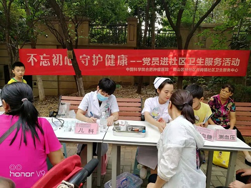 为进一步增强广大群众的健康养生意识,提高群众健康知识水平,方便群众在家门口看病就医,8月22日,医学物理中心第三党支部结合“不忘初心、牢记使命”主题教育的开展,联合中科院合肥肿瘤医院蜀山经开区医疗卫生服务部来到合肥中海原山社区,开展党员进社区义诊活动。