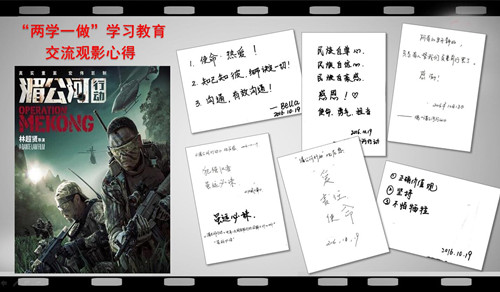 在分享会上,支部党员回顾了湄公河“10·5”真实案件的始末,围绕剧情展开讨论,并写下了对影片感悟的关键词。大家认为,民族“自尊心”不允许任何人践踏,在危难时刻,中国党和政府显示出保护国民的强大力量。13名中国公民的鲜血染红湄公河,中国警察开展了建国以来的第一次境外追捕行动,“犯我中华者,虽远必诛”的行为震惊了全世界,更呈现了中国在崛起之后有能力保护海内外每一个中国公民并为他们讨回公道,让海外的中国人更有归属感、安全感。中国警察无私无畏、舍生忘死、顽强拼搏的精神也让与会党员深受震撼。沧海横流方显英雄本色,他们用胆识铸就金色盾牌,用忠诚为国家护航。今天的和平与安宁,是无数军人与警察牺牲了血泪与家庭换来的。