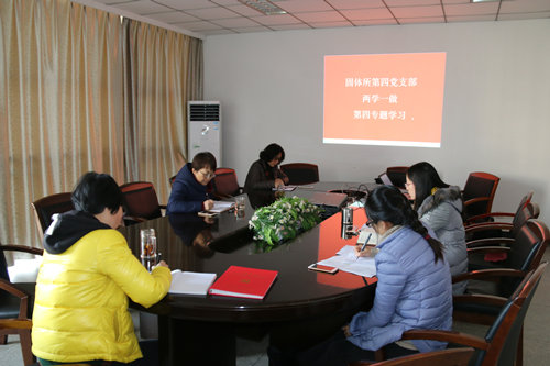 为进一步提升支部党员的服务意识和水平,12月16日,固体所第四党支部开展党员学习会议,结合“两学一做”学习教育第四专题“学宗旨,坚持创新为民”的主题,学习了十八届六中全会精神和习近平在全国高校思想政治工作会议上的讲话精神,会议由支部书记滕雪梅主持。