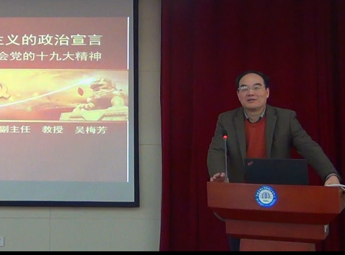 吴梅芳教授主要从四个方面深度解读了十九大精神:从牢牢把握新时代这条主线解读了新时代的依据、新时代的到来、新时代的科学内涵、新时代的意义、新时代的主要社会矛盾和新时代的历史使命;从深刻理解新思想的丰富内涵解读了新思想的历史定位、新思想的丰富内涵、新思想的基本方略;从开启新征程,绘制新蓝图解读了新时代的新征程和新部署;从新气象新作为,全面从严治党方面解读了新时代党的建设总要求和新时代党的建设具体部署。