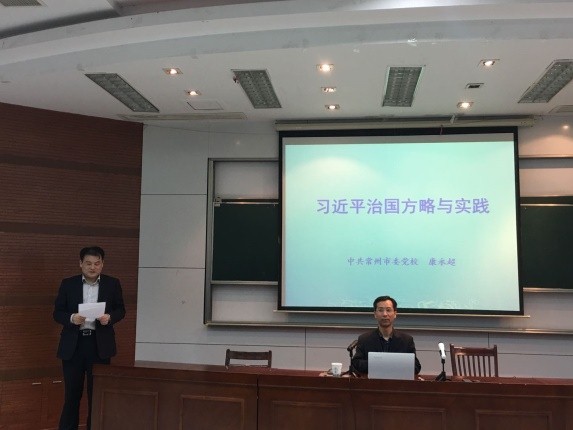 康永超紧紧围绕中国特色社会主义进入了新时代的主题,讲述了习近平的执政理念和肩负的“三大责任”,包括对民族的责任、对人民的责任、对党的责任。在顶层设计方面,结合新时代科技创新的新形势新要求深入讲解,带领大家加深对指导思想层面的“八个明确”和行动纲领层面的“十四个坚持”基本方略的领悟和理解,“八个明确”和“十四个坚持”两者之间是相辅相成的关系,一个是理论上的回答,我们要坚持和发展的是什么样的社会主义,回答“是什么”的问题,“十四个坚持”是从实践层面明确的回答,主要回答“怎么办”的问题。康永超阐述了习近平治国方略难题突破的四个方面:打虎拍蝇树立新风、南海造岛争取主动、开启全面深化改革、“一带一路”开辟未来。最后,结合习近平的个人经历引出其三大情结和使命担当,包括红色情结、家国情结、黄土情结等。