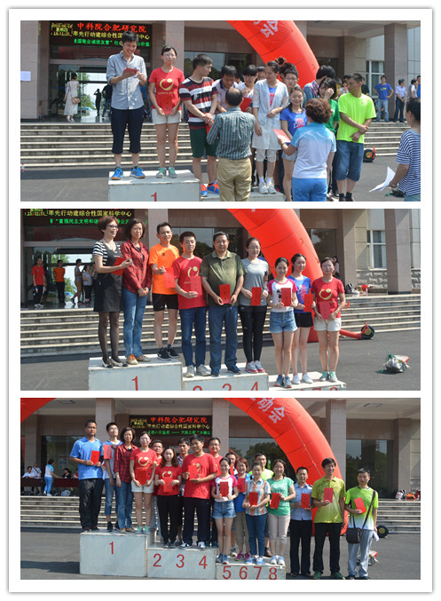 此次运动会,中心共有98名职工报名参加,全体队员以饱满的热情,积极的态度投入到各个项目的角逐中,大家奋勇争先,相互鼓励,取得了优异的成绩。长跑比赛,中心职工张振凤、高翔、许祥、夏登全,分别获得中年组女子第一、第六,男子第四、第八的好成绩;滚铁环项目科技组一队、普通组六队分别获得了科技组、普通组三等奖;企鹅漫步项目普通组四队获得普通组二等奖;团体跳绳凭借着高度的精神集中和高涨的拼搏士气,最终以3分钟跳305个的佳绩赢得了全院27支代表队的第四名。