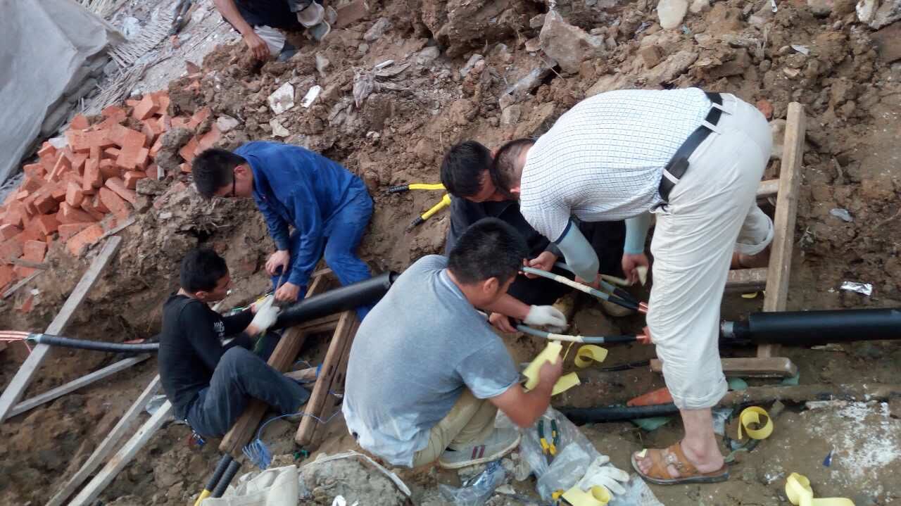 事发突然,服务中心领导迅速组织人员赶赴现场,排查故障原因,立即将故障线路外的负荷恢复,保障岛内其它区域正常供电。随后及时要求发布并张贴停电通知,告知受影响的住户断电的原因及预估恢复供电时间。由于挖断电缆为10kV高压电力,给抢修工作带来了严峻的考验,供电所外线职工迅速完成材料配置,顶着室外约40℃的高温,严格按照《电业安全工作规程》完成了线缆切割、焊接、绝缘检测等工作。热浪炙烤下持续工作6个小时,大家的汗水早已浸湿衣衫,没有人叫苦叫累,看到恢复的光明都开心得笑了。抢修现场,中心领导一直坚守,要求大家轮流换岗,并送来毛巾、矿泉水,叮嘱大家既要加快抢修进度,更要保障自身安全。在外线电工全力抢修的同时,内线值班电工也对上百个咨询电话做好了解释和维修进度的告知工作,得到了停电用户的理解。