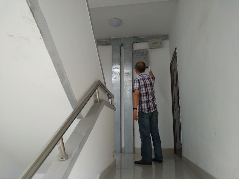 随后,物业部工作人员对东、西区研究生公寓安全通道、安全设施设备运行状况进行了检查,对公寓楼道、电梯间、公共卫生间、浴室的卫生整洁及公寓各楼栋的公告栏的使用情况进行了查看。对极个别楼栋清扫不彻底,当场督促保洁员进行清扫。