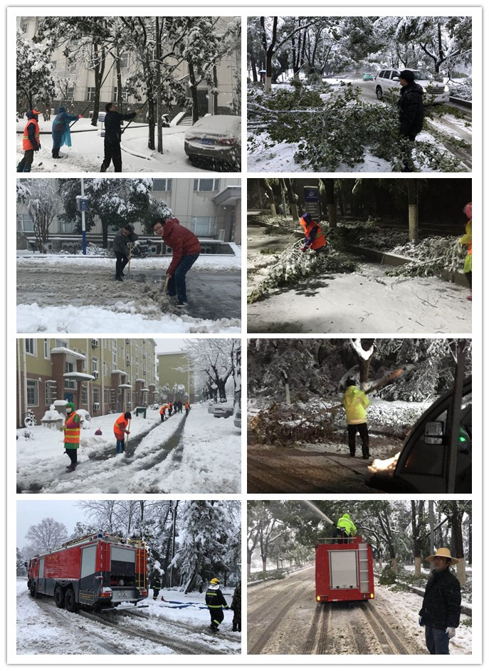 4日凌晨,服务中心通过中心工作微信群对除雪抗灾工作进行全面部署,明确任务,细化分工。环卫部负责清理主次干道积雪、绿化部负责清理积雪压断的树枝、治安办负责路面交通安全疏导等。此外服务中心和人教处还组织人员对二号楼门前积雪进行清扫。4日下午,面对持续不断的大雪,服务中心园区治安办用消防车冲洗大树上的积雪,并特邀井岗消防中队利用消防水炮冲击安光二室实验大棚上的积雪。经过一天的奋战,园区主次道路及东西区居民密集区道路上断裂的树枝已移至路边待放晴后集中处理,道路已基本保持交通通畅。同时,服务中心针对恶劣天气加强了夜间巡逻力度,发现问题,立即处理,为科学岛职工、居民及学生的安全出行提供有力保障。